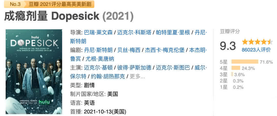 一部好意思剧《成瘾剂量》把这段历史陈陈相因搬上荧屏,豆瓣9.3分,即是因为它比违纪片还违纪,比恐怖片还恐怖。
